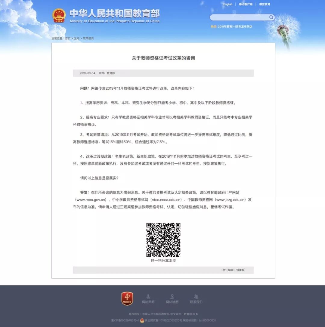考試難度增加:從2019年11月考試開始,教師資格證考試單位將進一步提高考試難度,降低通過比例,提高教師選拔標準:筆試15%面試50%,綜合通過率為7.5%。