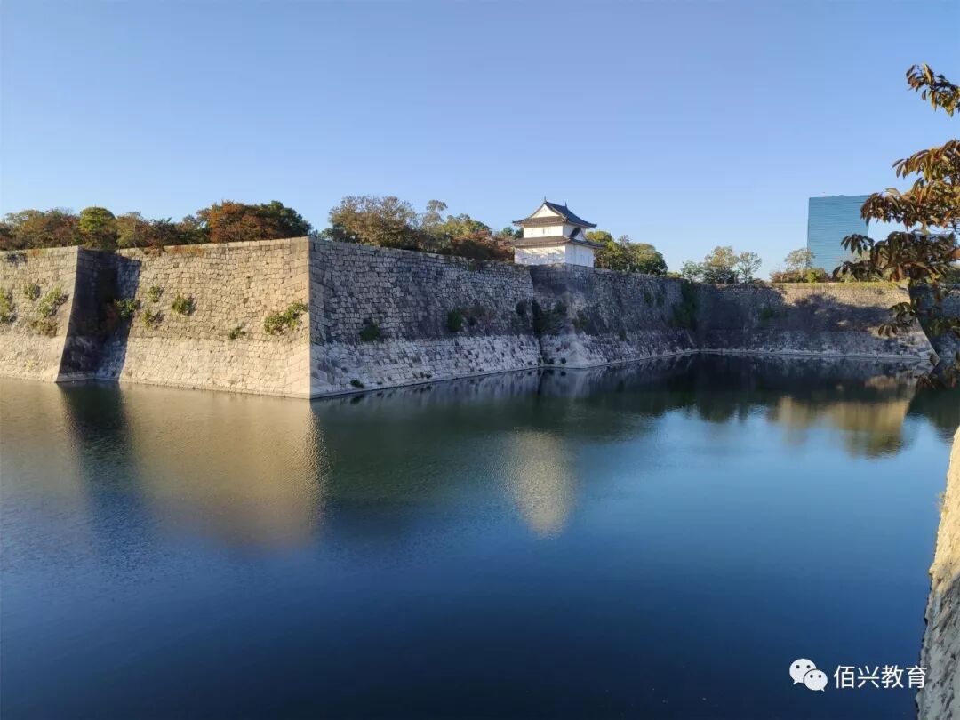 ? ?我們合影的背景樓臺為大阪城的天守閣,上有展望臺和博物館,頂層可以眺望大阪灣一帶的大阪平原,是一處國外旅游的必到景點。