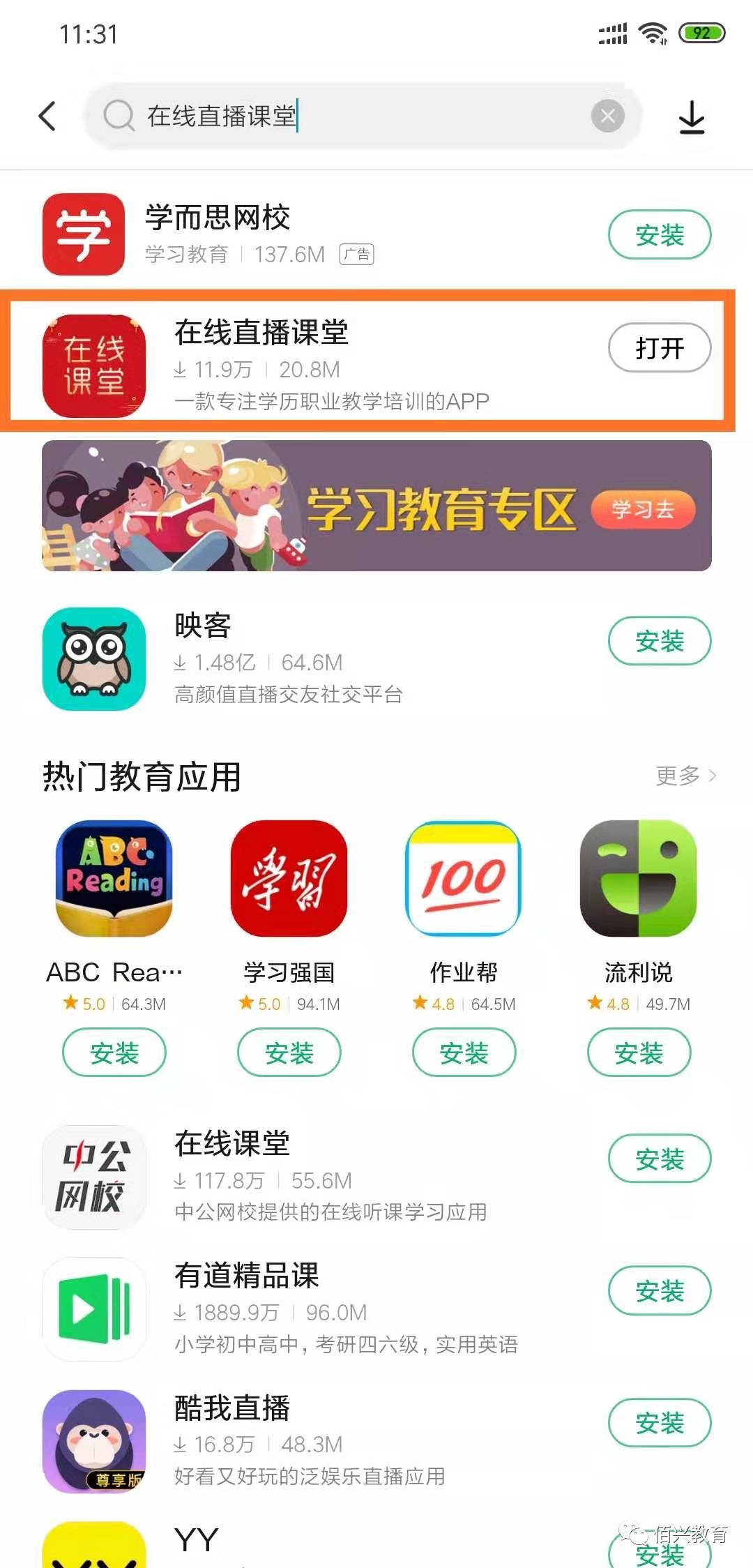 2.在手機(jī)應(yīng)用市場(chǎng)下載“在線直播課堂”這個(gè)APP: