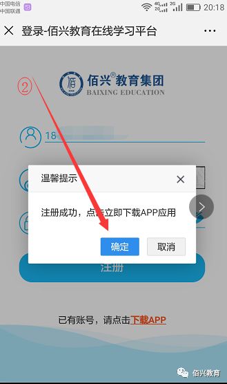 ②注冊(cè)成功后,點(diǎn)擊“確定”下載APP應(yīng)用