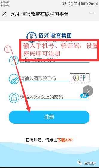 ①輸入手機(jī)號(hào),驗(yàn)證碼,設(shè)置密碼,點(diǎn)擊注冊(cè)
