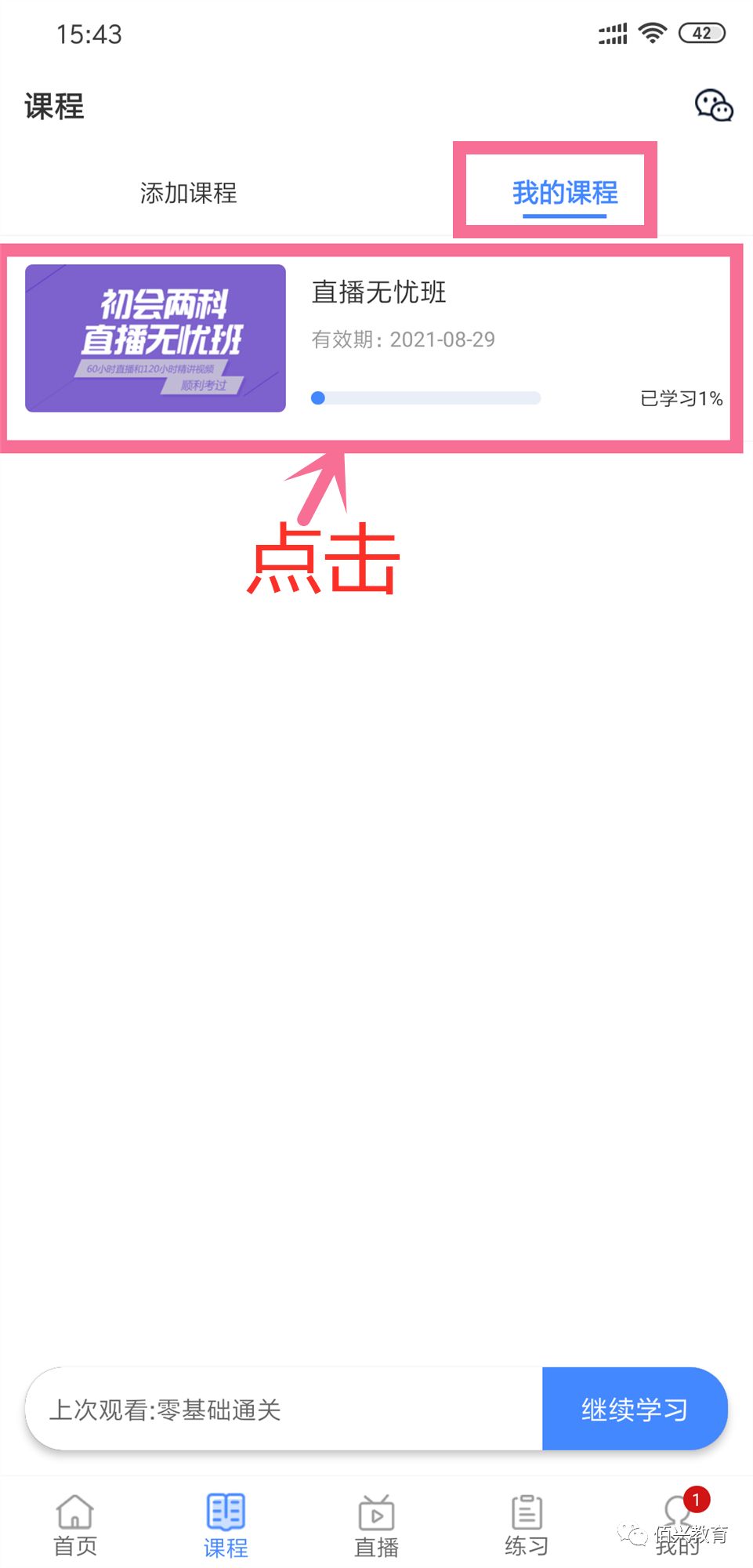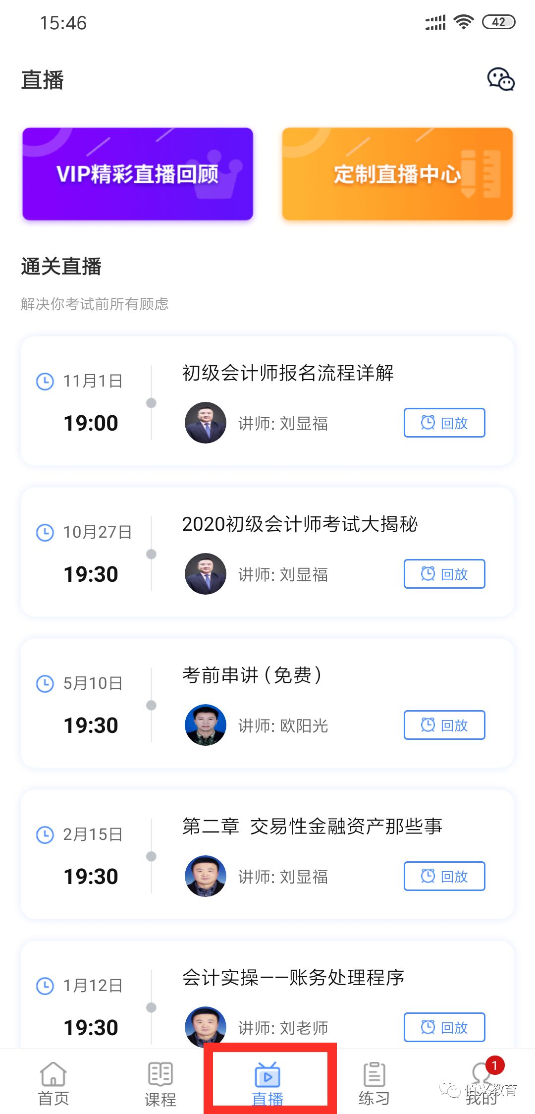 7.直播課程可以直接點(diǎn)擊“直播”,當(dāng)天的直播如果沒(méi)空看的話,改天還可以看回放內(nèi)容