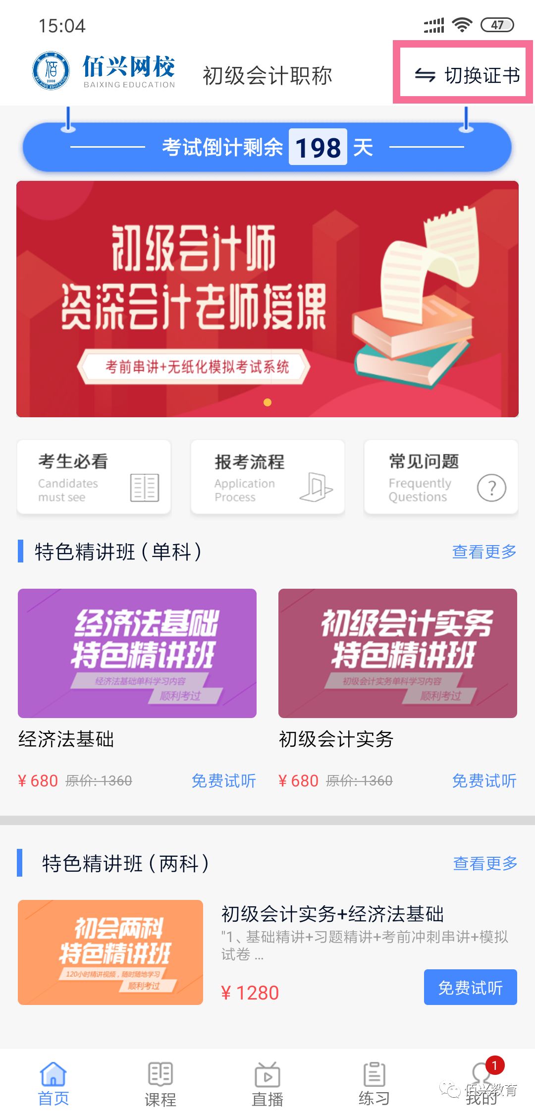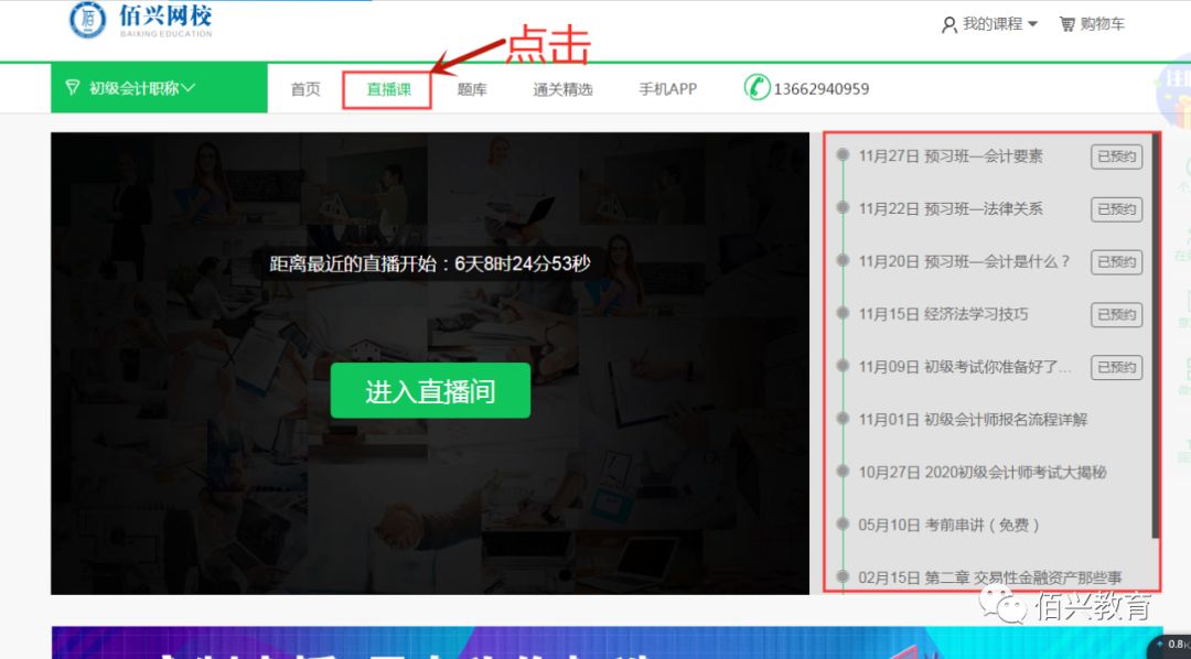 3.看直播課程的話,在網(wǎng)頁(yè)頂部,直接點(diǎn)擊“直播課”,就可以看到當(dāng)天的或之前的直播課程了
