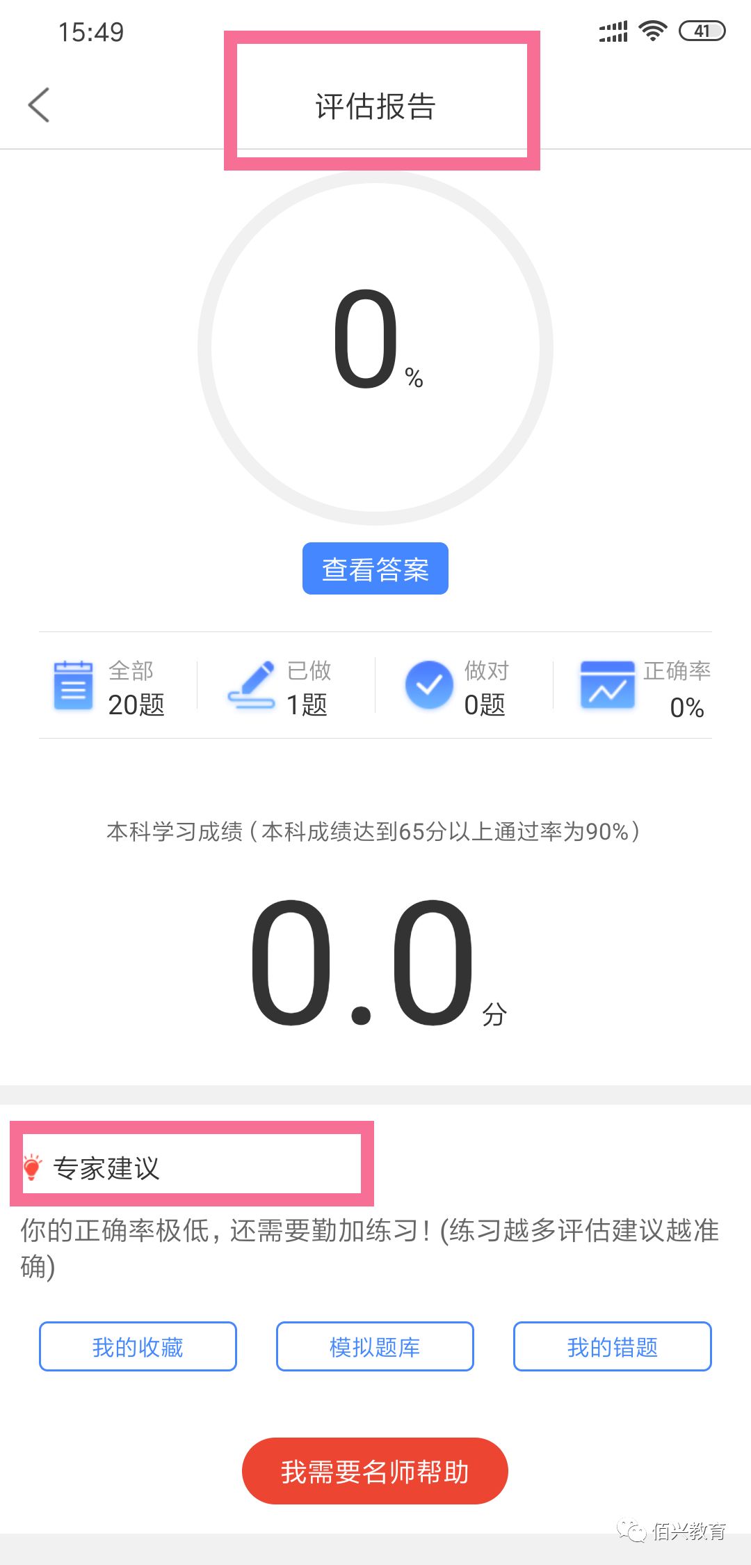 ③答完題,提交完試卷后,都會(huì)有“評(píng)估報(bào)告”,有助你提供通過(guò)率